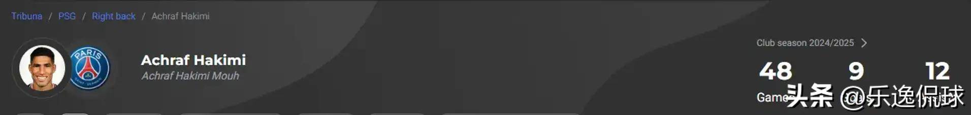 阿什拉夫在对阵国际米兰的欧冠决赛中凭借惊艳表现证明了自己是世界足坛最出色的边后卫之一。攻防两端的全面表现使他不仅打入精彩进球,还在防守中展现了极强的破坏力。作为巴黎圣日耳曼的主力,他在48场比赛中贡献了9球和14次助攻,出色的欧冠表现令他在金球奖排行榜中稳居前列。